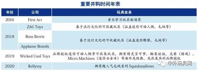 此外,還有并購(gòu)?fù)型婢吖荆鰪?qiáng)自身授權(quán)產(chǎn)品的設(shè)計(jì)、研發(fā)和運(yùn)營(yíng)能力。其中,2019年收購(gòu)的Wicked Cool Toys和2020年收購(gòu)的Kellytoy,為Jazwares帶來(lái)了巨大的好處: