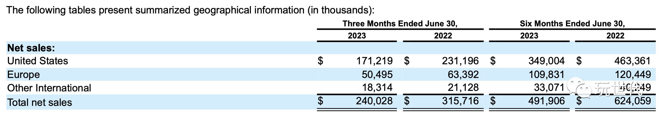 全球主要市場銷售規模全面下滑。美國和歐洲凈銷售額降低了25.9%和20.3%,分別為1.712億美元和5,050萬美元。