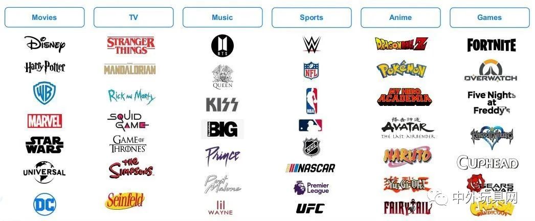 Funko的前十大授權合作方貢獻了約7成銷售額,其中迪士尼、盧卡斯影業和漫威相關商品銷售額占比達4成。包括迪士尼、哈利波特、漫威、星球大戰、DC、三麗鷗等,這些IP作品的市場運作和營銷動作直接影響著Funko玩偶的銷售。